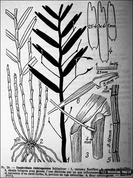 References W3 Tropicos, Kew Monocot list , IPNI ; *Contributions to the Flora of New Caledonia Schlechter 1906; Flore de la Nouvelle-Caledonie et Dependences Vol 8 Orchidaceae Halle 1977 drawing fide; Die Orchideen lieferung 11/12 633 - 752 Brieger 1981 as Kinetochilus cleistogamus; Orchid Species Culture Dendrobium Bakers 1996;