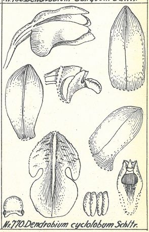 Dendrobium cyclolobum Schltr. 1912 SECTION Grastidium [Bl] J J Sm 1905 Type Drawing by © Schlechter and The Swiss Orchid Foundation at the Jany Renz Herbaria Website