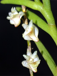 Found in southern Vietnam as a small to medium sized, cool growing orchid with an erect stem enveloped by leaf bearing sheaths carrying a single terete, linear leaf that blooms on shot 1 to 3 flowered inflorescence arising on the leafless apical part of the stem.