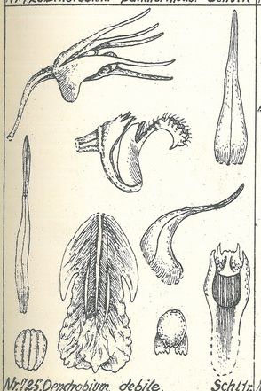 Dendrobium debile Schltr. 1912 SECTION Grastidium [Bl] J J Sm 1905 Drawing by © Schlechter and The Swiss Orchid Foundation at the Jany Renz Herbaria Website