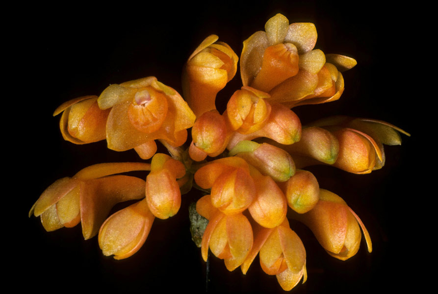 Found in New Guinea on trees in highland forest of the Bismark range at eleavations around 1500 to 2000 meters as a medium sized, cool to cold growing epiphyte with elongate, flexuous, glabrous stems carrying many, erect-patent, linear to lanceolate-linear, acute, glabrous leaves that blooms in the fall on short, densely 10 to 20 flowered inflorescence with lanceolate, acuminate floral bracts.