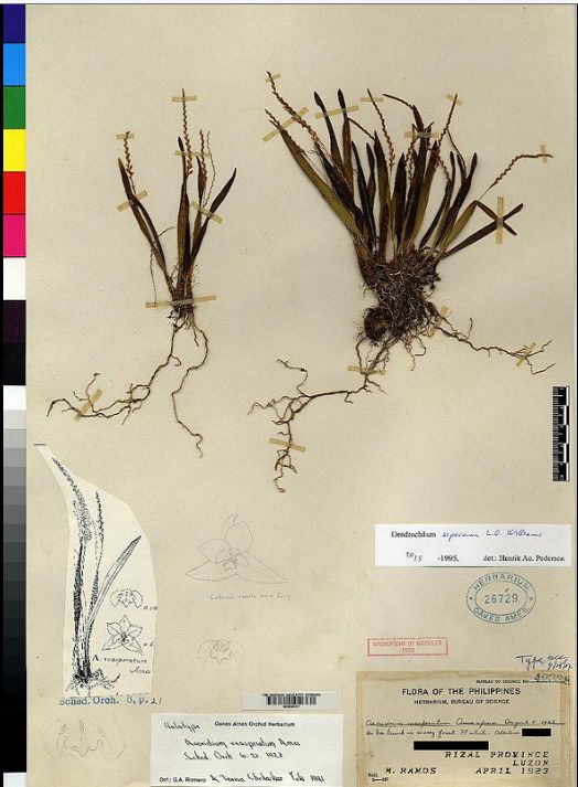 Dendrochilum asperum L.O.Williams 1952 SUBGENUS Acoridium SECTION Acoridium Drawing and Collection sheet by © Ames