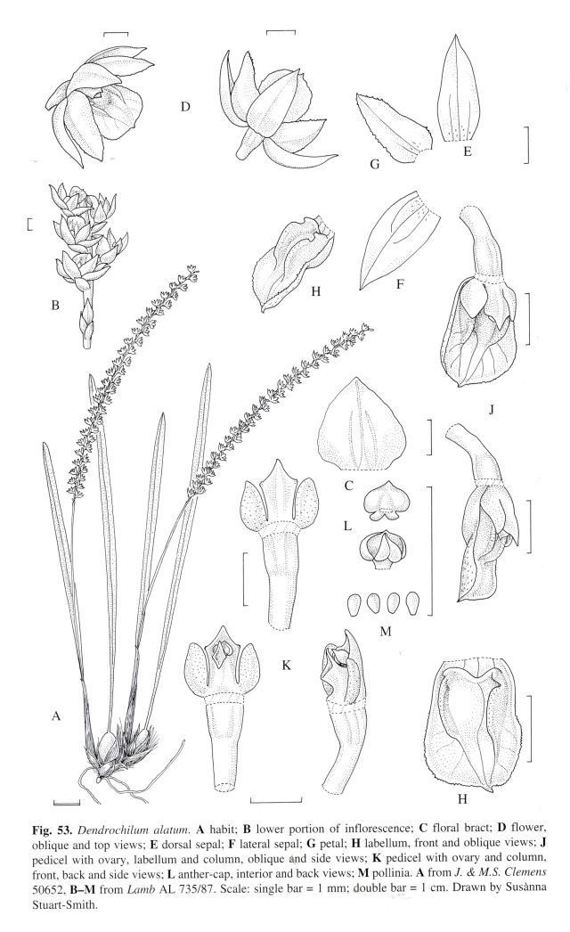 References W3 Tropicos, Kew Monocot list , IPNI ; *Studies in the Family Orchidaceae Vol VI Ames 1920 drawing good; ; The Plants of Mount Kinabalu Vol 2 Orchids Beaman, Wood, Beaman & Beaman 1993 photos hmm; A Checklist of the Orchids of Borneo Wood & Cribb 1994 drawing hmm; Dendrochilum of Borneo Wood 2001 drawing ok/photo fide; The Orchids of Mount Kinabalu Vol 2 Wood, Beaman, Lamb, Chu Lun and Beaman 2011 drawing/photo fide; The Orchids of Mount Kinabalu Vol 2 Wood, Beaman, Lamb, Chu Lun and Beaman 2011 drawing/photo ok