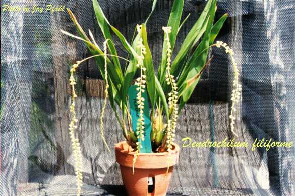 Photo by © Eric Hunt /font color=red> Photo by Jay Pfahl Photo courtesy of Andy's Orchids Copyright © 2002 All rights reserved. Common Name The Golden Chain Orchid - The Thread-Like Dendrochilum [refers to the long, slender inflorescence]