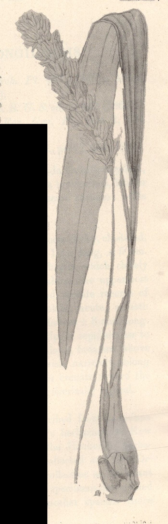 Found on Mindanao from Zamboanga in the Philippines at elevations around 1530 meters as a small sized, cool growing epiphyte with oblong, spindle-shaped pseudobulbs enveloped by black spotted sheaths and carrying a single, apical, linear, oblanceolate, obtuse, tipped with an abrupt short spine, 3 veined, narrowing below into the petiolate base leaf that blooms on a shorter than the leaf, 8 to 12" [20 to 30 cm] long, slender, zig-zag, rachis 1.8 to 3.2" [7 to 8 cm] long, cylindric, densely many flowered inflorescence with nearly acute, longer than the ovary floral bracts and carrying reddish brown flowers when dry.