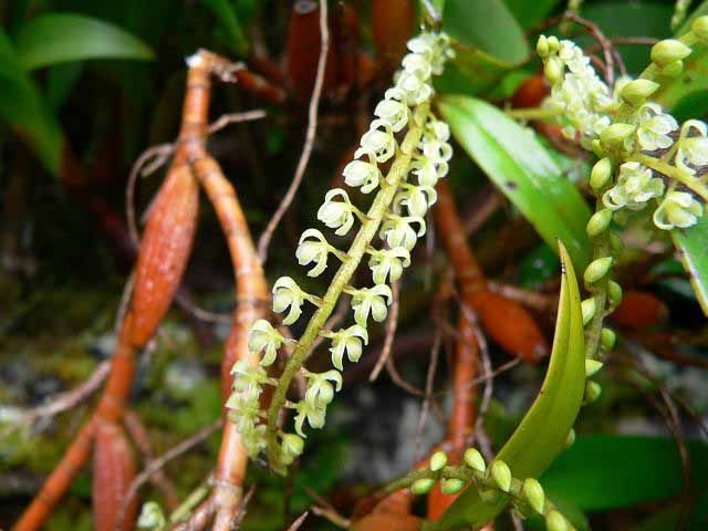 Common Name The Thick Dendrochilum [refers to the leaves and the fleshy floral parts]