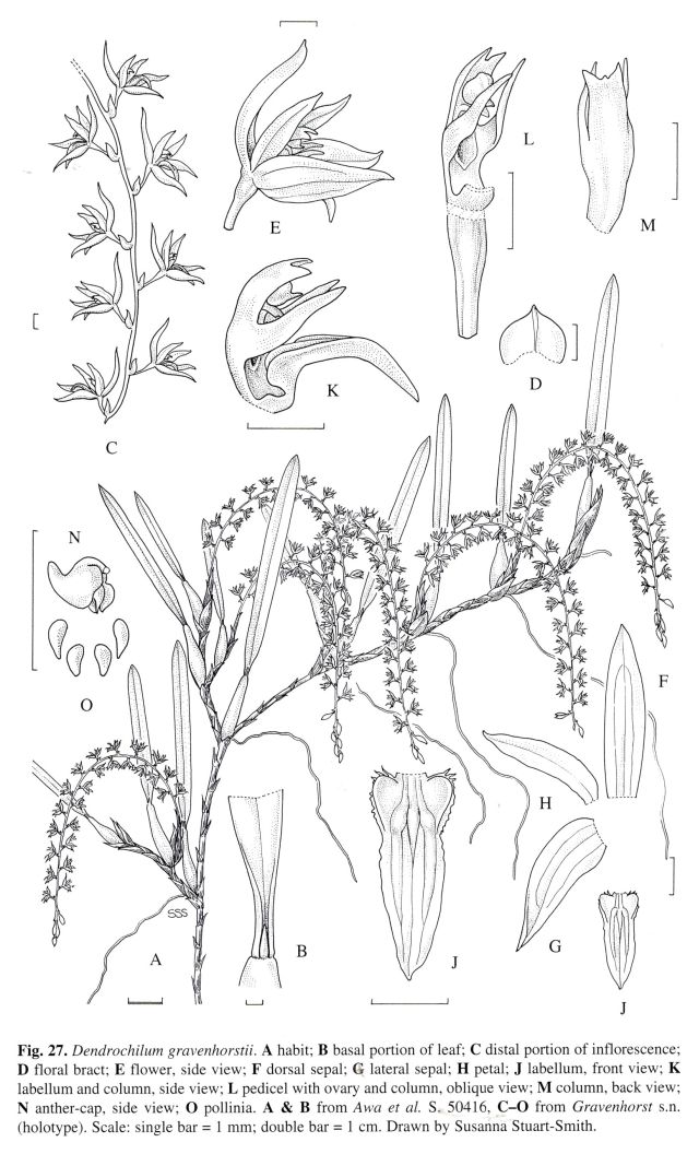 Dendrochilum gravenhorstii J.J.Sm. 1920 SUBGENUS Dendrochilum Drawing by © Susanna Stuart Smith>