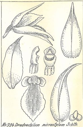Dendrochilum microstylum Schltr. 1911 SUBGENUS Platyclinis SECTION Eurybrachium TYPE Drawing by © Schlechter and The Swiss Orchid foundation at the Jany Renz Herbaria