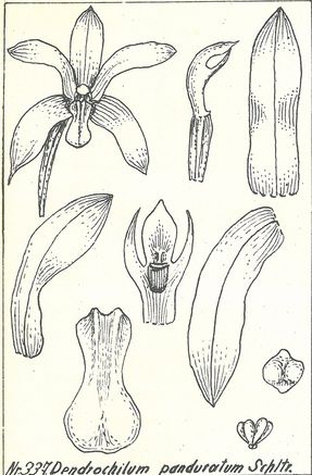 Dendrochilum panduratum Schltr. 1910 SUBGENUS Dendrochilum Drawing by © Schlechter and The Swiss Orchid foundation at the Jany Renz Herbaria