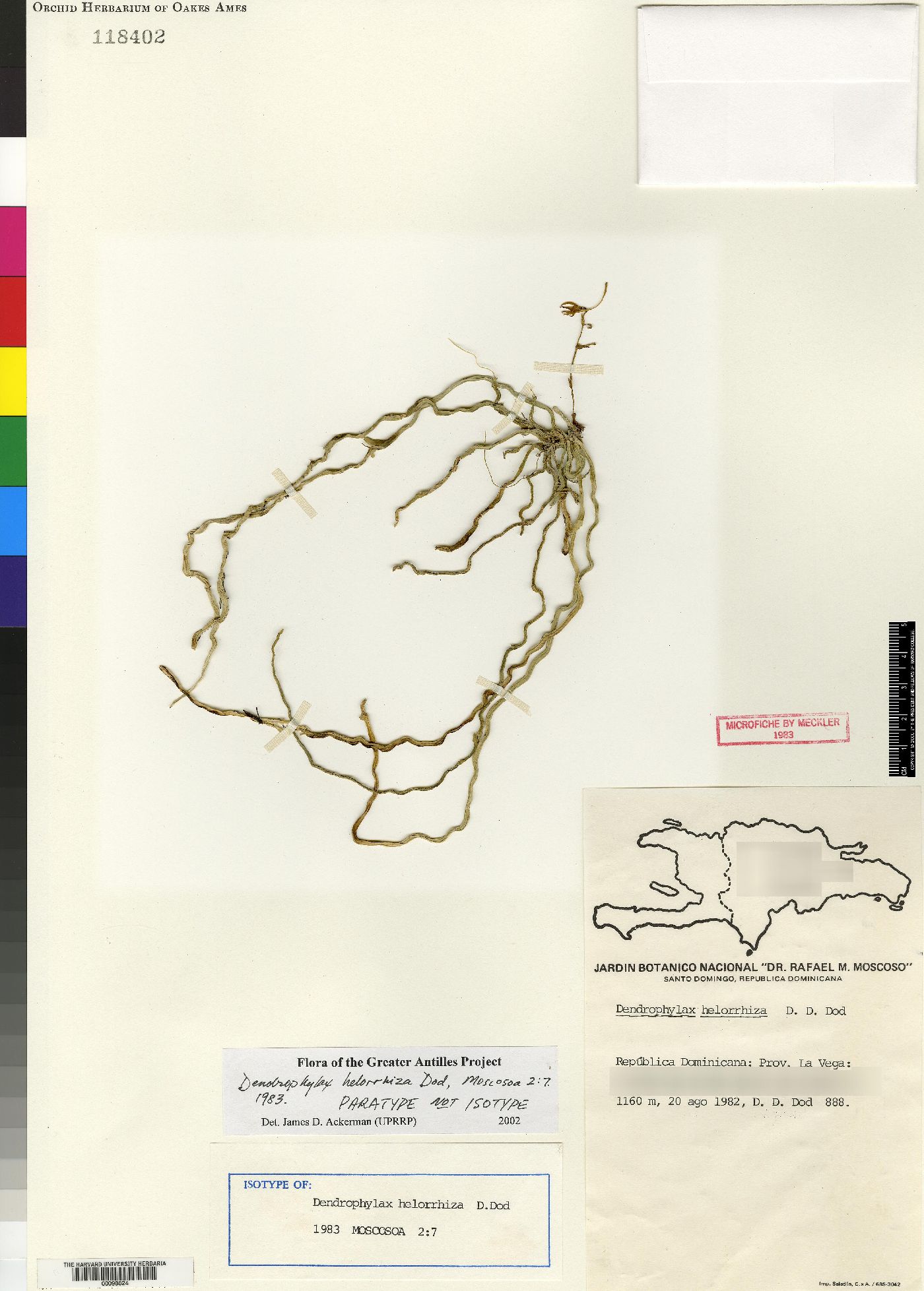 Dendrophylax helorrhiza Dod 1983 Collection Sheet by © Dodd
