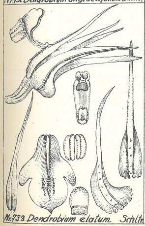 Dendrobium elatum Schltr. 1912 SECTION Grastidium [Bl] J J Sm 1905 Drawing by © Schlechter and The Swiss Orchid Foundation at the Jany Renz Herbaria Website
