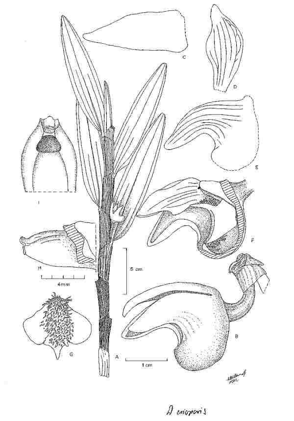 Dendrobium eriopexis Schltr. 1905 SECTION Eriopexis Schlechter Drawing by © Wolfgang H. Bandisch and his Papua New Guinea Orchid Photo Website