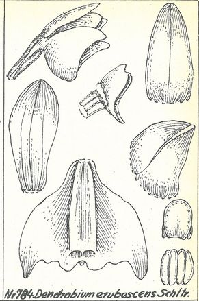 Dendrobium erubescens Schltr. 1912 SECTION Grastidium [Bl] J J Sm 1905 Type Drawing by © Schlechter and The Swiss Orchid Foundation at the Jany Renz Herbaria Website