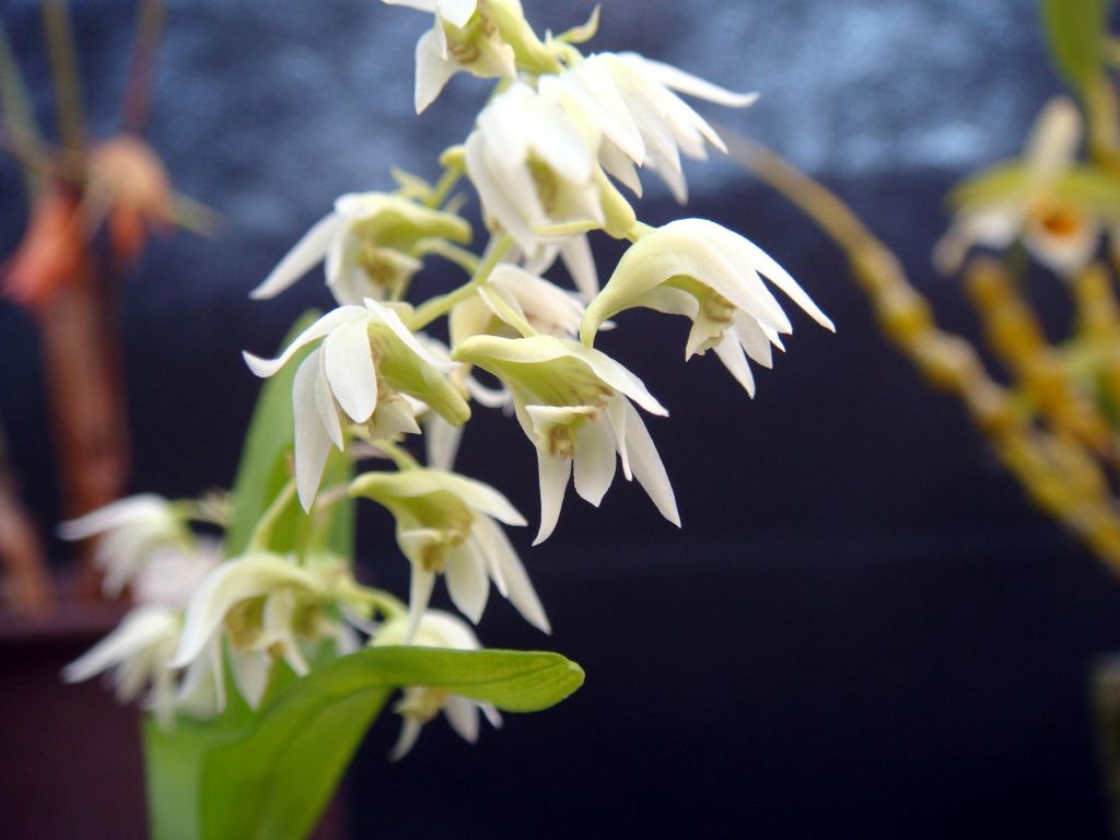 Found in Thailand in montane forests at elevations of 1300 to 1900 meters as a miniature sized, cool growing epiphyte with cylindrical, tapering towards the apex stems carrying 5 to 7, linear-oblong, acute, basally clasping leaves that blooms in the summer and earlier fall on 1 to 2 per stem, peduncle .6 to .8" [1.5 to 2 cm] long, 1.6 to 2.6" [4 to 6.5 cm] long overall, to 10 flowered inflorescence with as long as the ovary floral bracts and carrying long lasting flowers.