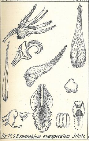Dendrobium exasperatum Schltr. 1912 SECTION Grastidium [Bl] J J Sm 1905 Drawing by © Schlechter and The Swiss Orchid Foundation at the Jany Renz Herbaria Website