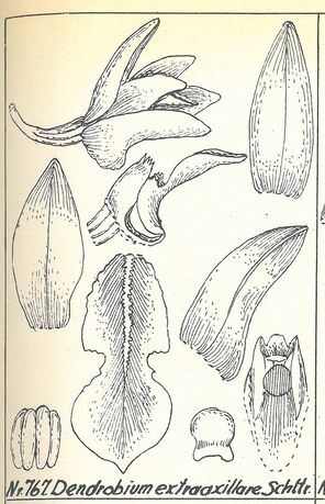 Dendrobium extra-axillare Schltr. 1912 SECTION Grastidium [Bl] J J Sm 1905 Type Drawing by © Schlechter and The Swiss Orchid Foundation at the Jany Renz Herbaria Website