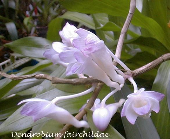 References W3 Tropicos, Kew Monocot list , IPNI The Complete Writings on Philippine Orchids Vol 2 Quisumbing 1981 drawing fide/photo good; Orchidiana Philipiniana Vol 1 Valmayor 1984 drawing fide; Orchid Species Culture; Dendrobium Bakers 1996; Dendrobium and its Relatives Lavarack, Harris and Stocker 2000 photo fide; Australian Orchid Review Vol 66 No 3 2001 photo as D fairchildae f album; The Orchids of the Philippines Cootes 2001 photo fide; The Orchids of the Philippines Cootes 2001 as D fairchilae var album photo fide; Flora Malesiana Orchids of the Philippines Vol I Agoo, Shuiteman and de Vogel 2003; The Dendrobiums H. P. Wood 2006 photo fide; Philippine Native Orchid Species Cootes 2009 photo fide; Philippine Native Orchid Species Cootes 2009 as D fairchilae var album photo fide; A Guide to the Dendrobium of the Philippines Cootes & Tiong 2015 photo fide
