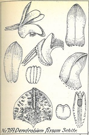 Dendrobium fissum Schltr. 1912 SECTION Grastidium [Bl] J J Sm 1905 Drawing by © Schlechter and The Swiss Orchid Foundation at the Jany Renz Herbaria Website