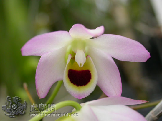 Found in southcentral Sichuan, eastern Hunan, Hubei and Henan provinces of China on rocks in mountain valleys at elevations of 1200 to 2000 meters as a miniature sized, cool to cold growing epiphyte with cylindric, slightly upcurved, unbranched, several noded stems carrying 2 to 4, alternate, oblong-lanceolate, subleathery, decurrent basally into the clasping sheaths, obtuse and slightly hooked apically leaves that blooms in the spring on a .4 to .8" lon, 1 to 2 flowered inflorescence arising on leafless stems with 3 to 4 basal bracts and pale white, ovate-triangular, acute floral bracts and carrying spreading flowers.