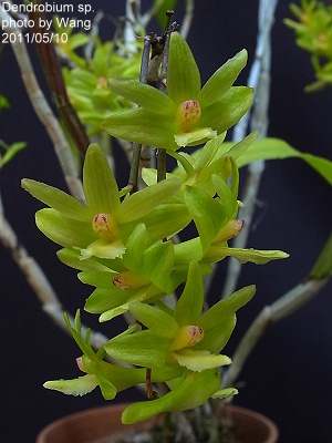 Found in Flores Island of the lesser Sunda Islands at elevations up to 600 meters as a medium sized, hot to warm growing epiphyte with erect canes carrying several, lanceolate, acute leaves that blooms in the later spring and early summer on an arching to pendulous, several to many flowered inflorescence.