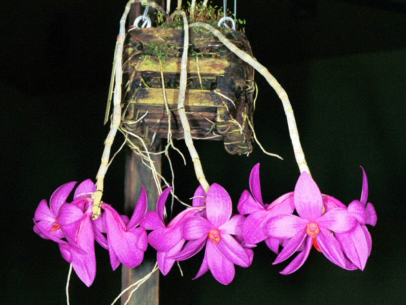 Best mounted on tree fern or cork to accomodate the pendant growing canes and given high humidity.