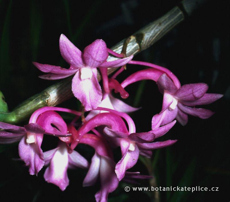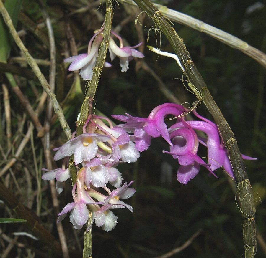 Found in north Vietnam with no collection data as a medium sized, epiphyte with erect to pendent? stems carrying oblong-lanceolate, acute leaves that blooms in the spring on a pendulous, few flowered inflorescence