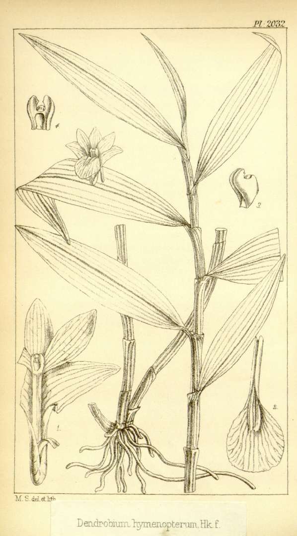 Dendrobium hymenopterum Hook.f. 1890 SECTION Calcarifera TYPE Drawing From Icones 21 Hooker 1890.