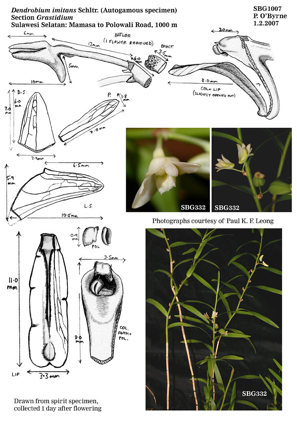 Dendrobium imitans Schltr. 1911 SECTION Grastidium Photo by © Paul Leong and drawings by Peter O'Byrne and The Swiss Orchid Foundation at the Jany Renz Herbaria Website