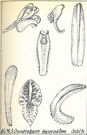 Dendrobium incurvatum Schltr. 1912 SECTION Grastidium [Bl] J J Sm 1905 Drawing by © Schlechter and The Swiss Orchid Foundation at the Jany Renz Herbaria Website