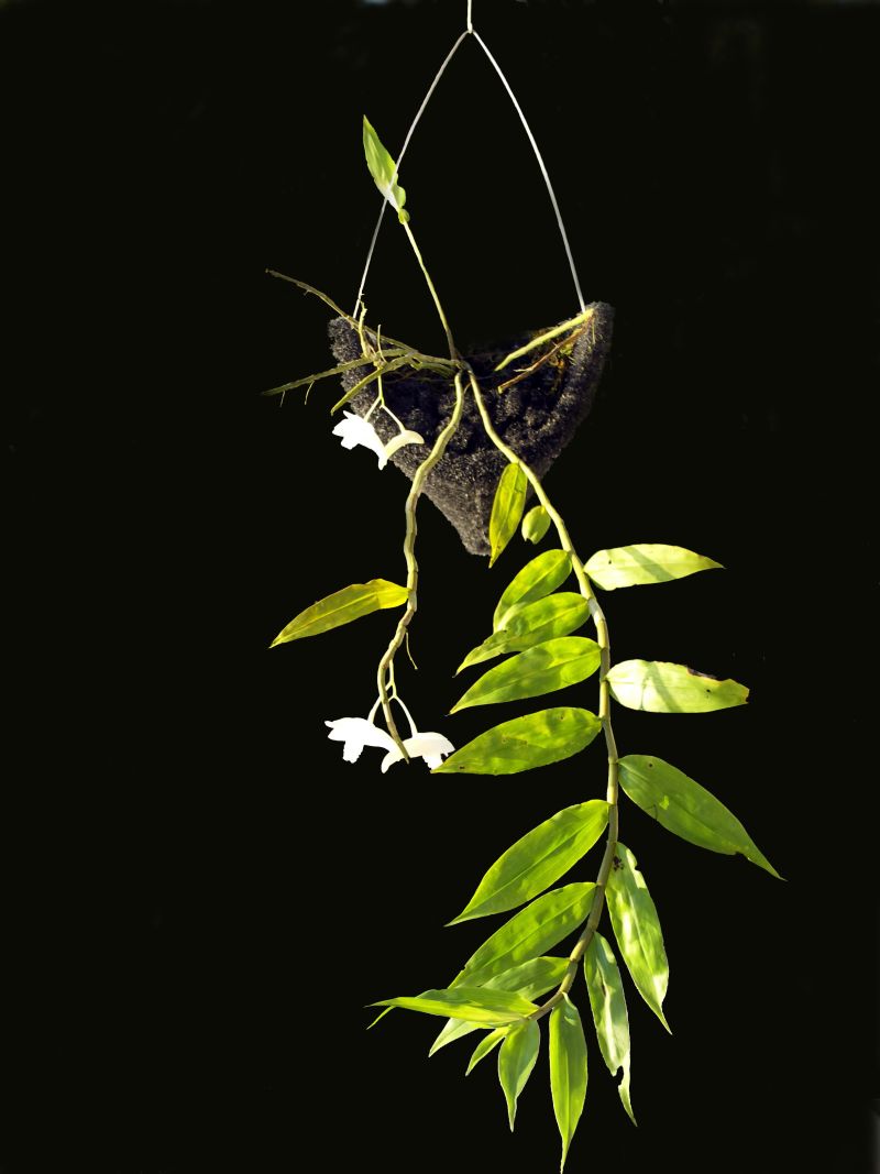 Found in Bali and Java often on roadside trees in bright light at elevations around 920 to 1220 meters as a medium sized, warm to cool growing epiphyte with stem that is slender basally and thickest in the middle and carries many, closely spaced, oblong leaves and blooms on a short, 2 to 4 flowered inflorescence arising most often on leafless stems and have thin textured flowers that do not open fully.