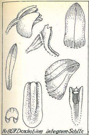 Dendrobium integrum Schltr. 1912 SECTION Monanthos Schlechter 1905 Type Drawing by © Schlechter and The Swiss Orchid Foundation at the Jany Renz Herbaria Website