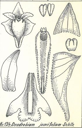 Dendrobium juncifolium Schltr. 1911 SECTION Crumenata Collection sheet by © J. Renz and The Swiss Orchid Foundation at the Jany Renz Herbaria Website