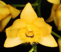 Found in the Khasia hills of northeastern India as a medium sized, warm to cool growing epiphyte with slender, zigzag towards the apex stem enveloped by striped sheaths and carrying deciduous, narrowly lanceolate, acute, unequally bilobed apically leaves that blooms in the later spring on a short, from the upper nodes of the stem, 2 to 3 flowered inflorescence and carrying fragrant flowers.