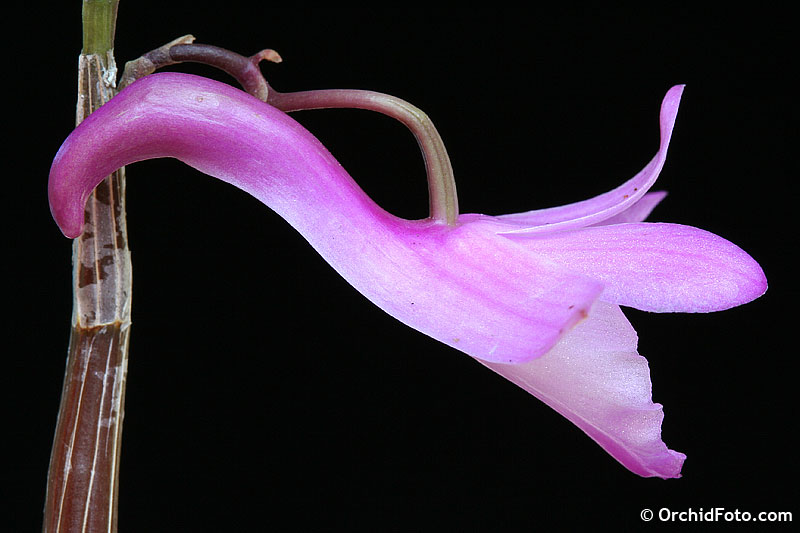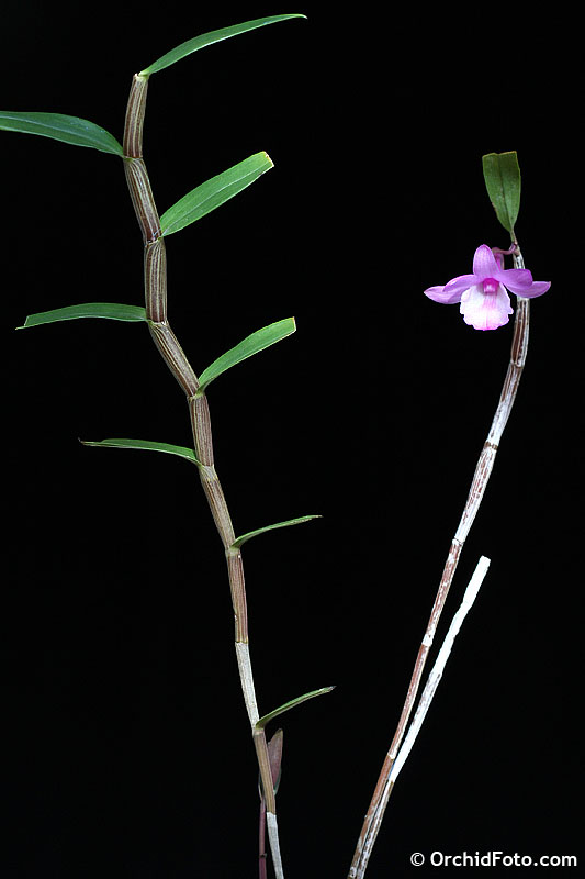 Found in Malaysia and southern Thailand at elevations up to 800 meters as a lowland, small sized, hot to warm growing epiphyte with weak, slender stems carrying several, linear-lanceolate, acute leaves that blooms in the fall on a short, single to 2 flowered inflorescence arising on older, mature, leafless stems.
