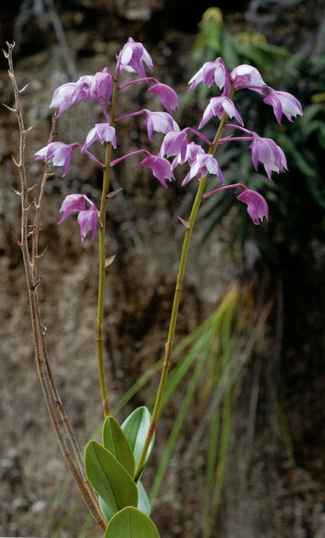 Found in western New Guinea near Mt Arfak in open scrub, oepn marsh, grasslands in marshy soil and open heath forests at elevations around 1800 to 2500 meters as a giant sized, cool to cold growing terrestrial that blooms in the winter