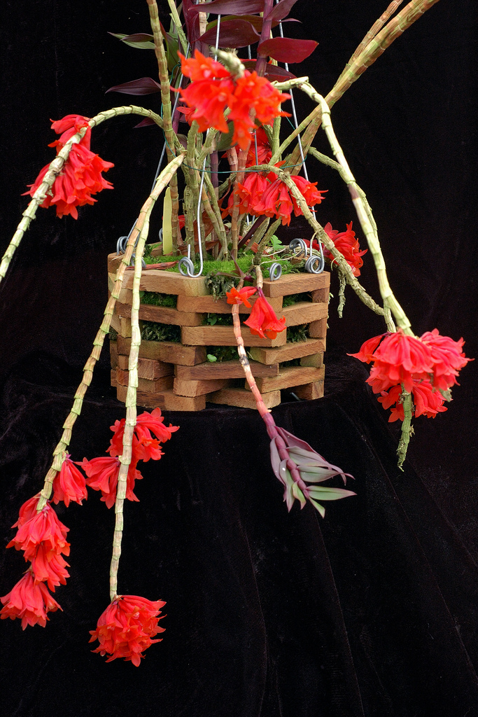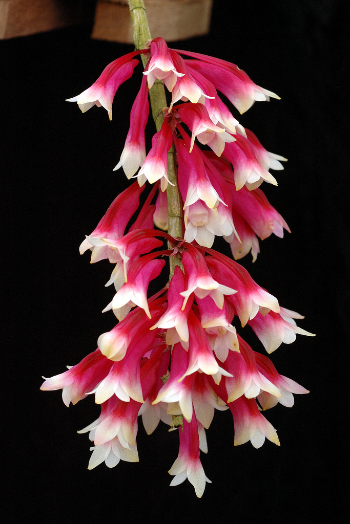 This plant is best mounted on tree fern or grown in baskets to accomodate the pendant growth habit and a somewhat dry rest is needed in the winter so reduce slightly water and fertilizer until the onset of new growth in the spring