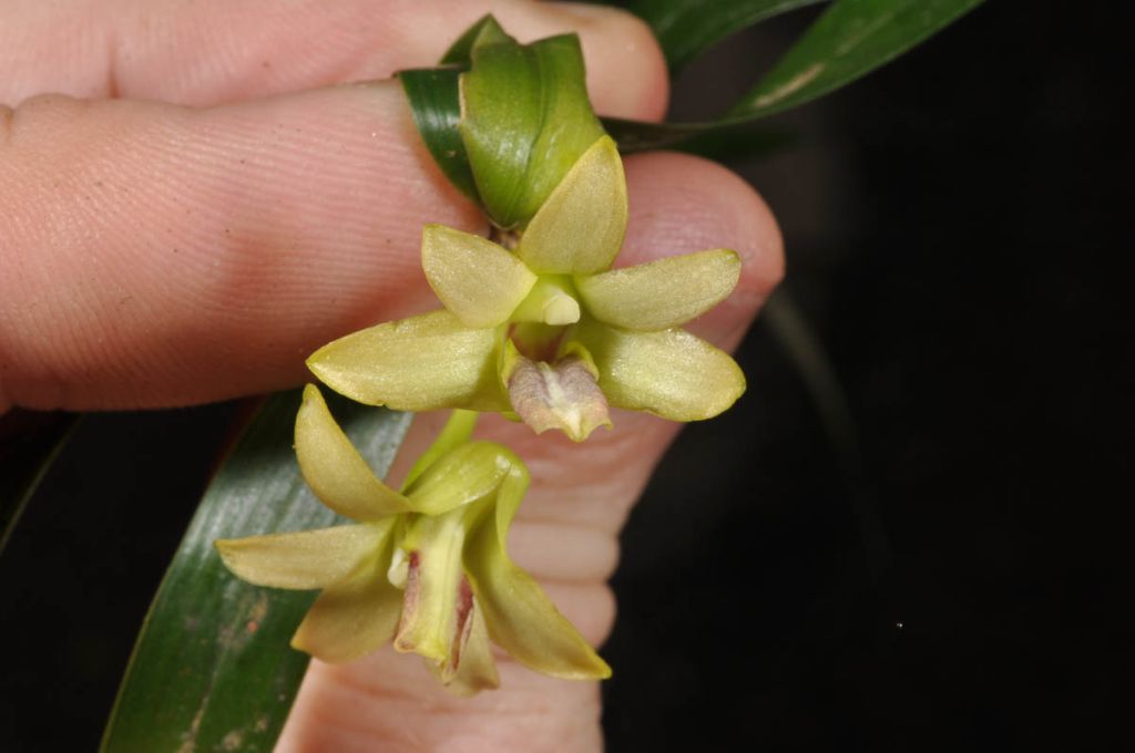 Found in Taidong Taiwan, Sulawesi and the Philippines in forests along creeks on trees at elevations of sea level to 1300 meters as a medium to just large sized, hot to cool growing epiphyte with smooth, long, cane-like stems carrying pointed, grass-like, close set, shiny green, thin textured, distichous leaves in the upper half that blooms in the winter; spring, summer and fall on a 2 flowered inflorescence arising opposite the leaves.
