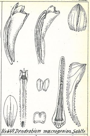 Dendrobium macrogenion Schltr. 1912 SECTION Calyptrochilus Schlechter 1905 Type drawing by © Schlechter and The Swiss Orchid Foundation at the Jany Renz Herbaria Website