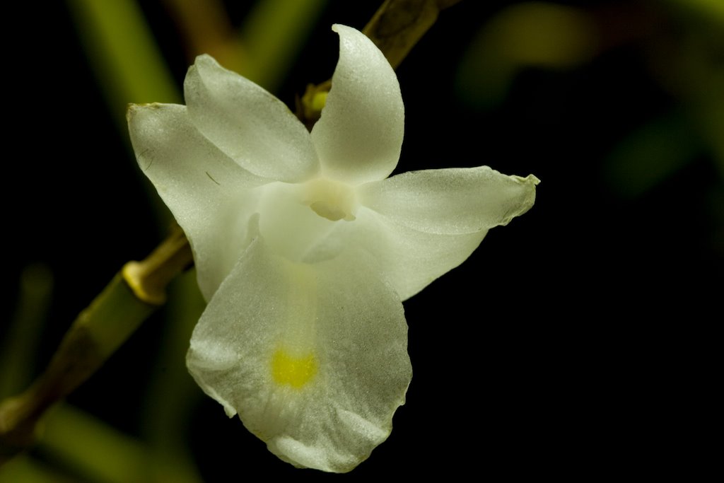 Constantly given as a synonym of D parciflorum but this one differs in blooming in the spring, the single yellow spot without calli on the lip, obtusely triangular side lobes and the mid lobe is bilobed. D parciflorum has a long yellow central stripe with a central raised callus.
