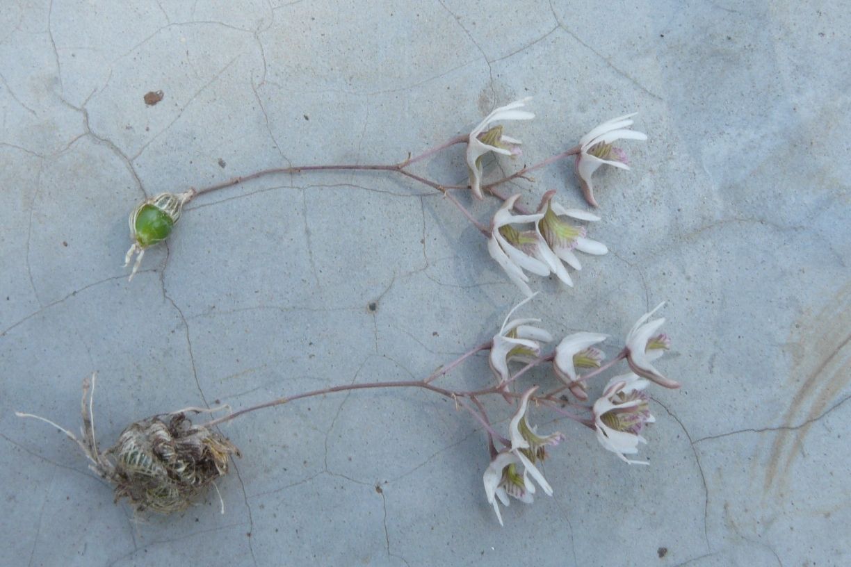 D elliotianum, D gregulus and D garretii are often mixed up. They can be easily separated by D elliotianum having a solid purple lip with a white flower, D gregulus has a light sulphur yellow flower with red purple veined sidelobes and D garretii has off white flowers with violet veins and a white or green lip with a central yellow patch and purple veined sidelobes. D microbulbon has a mostly white flower with just a few rose markings on the sidelobes and a white lip.