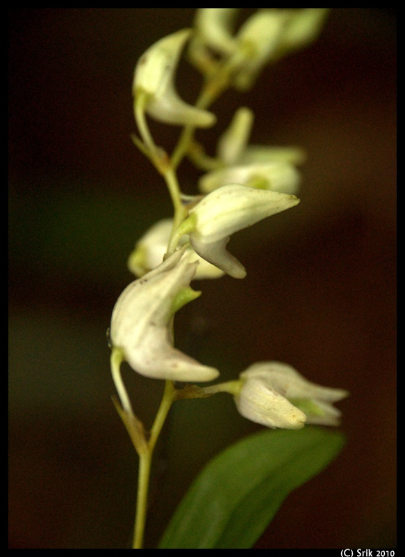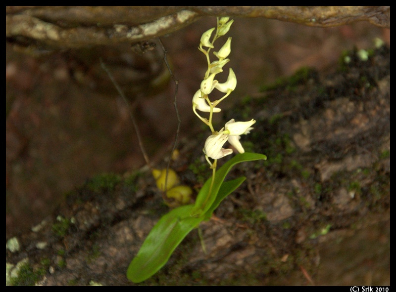 Found in southern India in hill forests at elevations of 2000 to 2500 meters as a mini-miniature sized, cold growing epiphyte with ovoid pseudobulbs carrying 2, rarely 4, oblong-lanceolate, obtuse to shortly acute, very thick leaves that blooms in the fall on a subterminal, 1.4 to 3" [3.5 to 7.5 cm] long, 6 to 10 flowered inflorescence