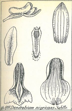 Dendrobium nigricans Schltr. 1912 SECTION Herpethophytum Schlechter 1912 Type Drawing by © Schlechter and The Swiss Orchid Foundation at the Jany Renz Herbaria Website
