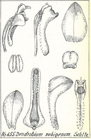 Dendrobium nubigenum Schltr. 1912 SECTION Calyptrochilus Schlechter 1905 Type drawing by © Schlechter and The Swiss Orchid Foundation at the Jany Renz Herbaria Website