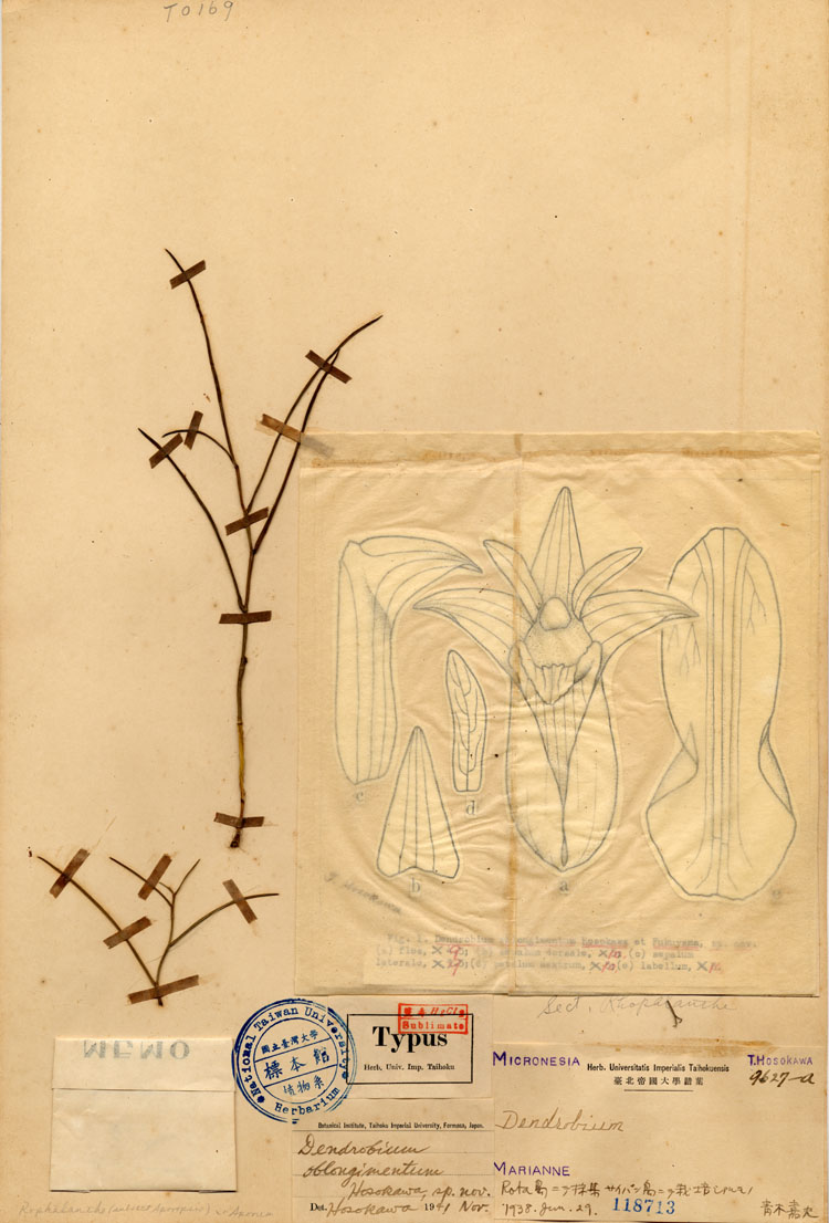 Dendrobium oblongimentum Hosok. & Fukuy. 1942 SECTION Crumenata Type Sheet by © Hosok. & Fukuy. and The Plants of Taiwan Website