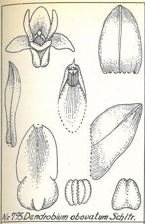 Dendrobium obovatum Schltr. 1912 SECTION Monanthos Schlechter 1905 Type Drawing by © Schlechter and The Swiss Orchid Foundation at the Jany Renz Herbaria Website