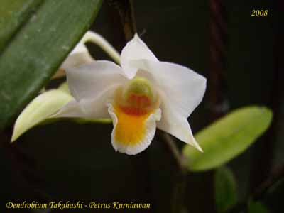 References W3 Tropicos, Kew Monocot list , IPNI ; Flora of Malaya Vol 1 Orchids Holttum 1953 drawing fide; A Checklist of the Orchids of Borneo Wood & Cribb 1994 photo not = Den dearei; A Checklist of the Orchids of Borneo Wood & Cribb 1994 as D takahashii; Orchid Species Culture; Dendrobium Bakers 1996; The Dendrobiums H. P. Wood 2006 photo fide; A Guide to the Dendrobium of Borneo J J Wood 2013 photo fide; Dendrobium of Borneo Wood 2014 photo/drawing fide