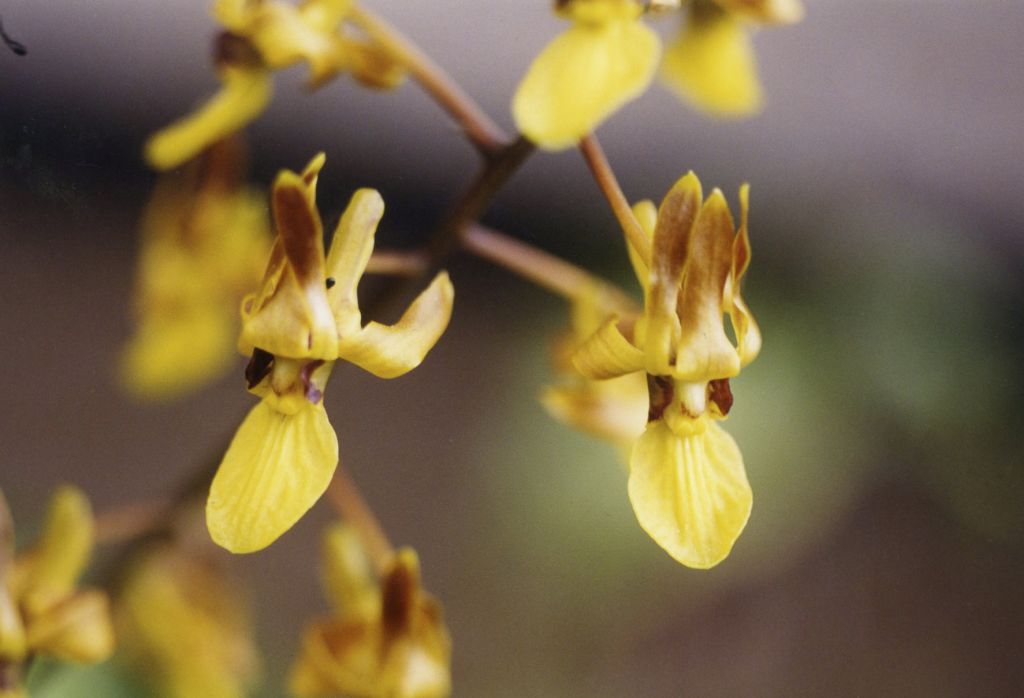 Found in Irian Jaya Indonesia at elevations around 200 meters as a hot growing epiphyte that blooms in the later summer on a 6 to 8" [15-20 cm] long, 5 to 10 flowered inflorescence carrying showy flowers with brown sepals and petals and a bright yellow lip.