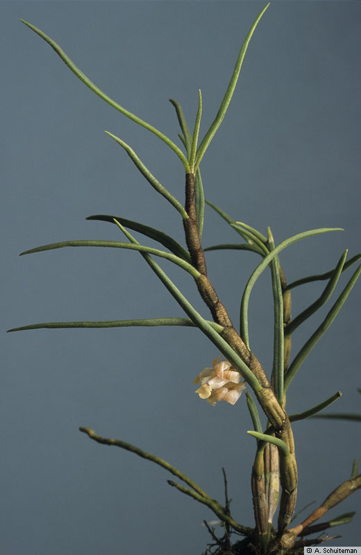 "Distinguished by the subterete, subfalcate, rigid, fleshy leaves and resupinate flowers." J J Wood 2014