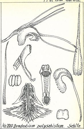 Dendrobium polyschistum Schltr. 1912 SECTION Grastidium [Bl] J J Sm 1905 Drawing by © Schlechter and The Swiss Orchid Foundation at the Jany Renz Herbaria Website