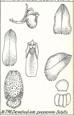 Dendrobium procerum Schltr. 1912 SECTION Monanthos Type Drawing by © Schlechter and The Swiss Orchid Foundation at the Jany Renz Herbaria Website